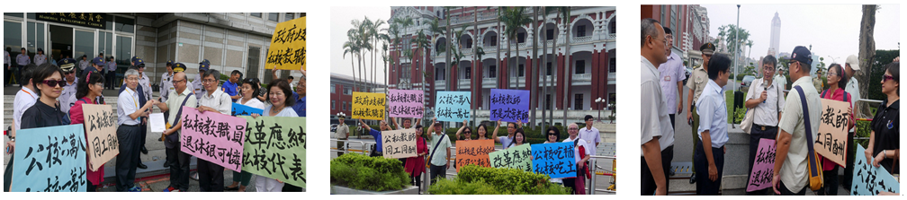 2016年10月27日: 至國家年金改革會議會場前抗議政府漠視私校教職員退休問題,並至總統府遞陳請書